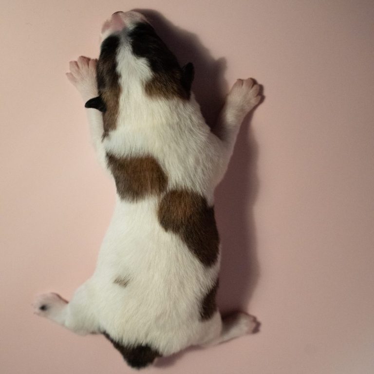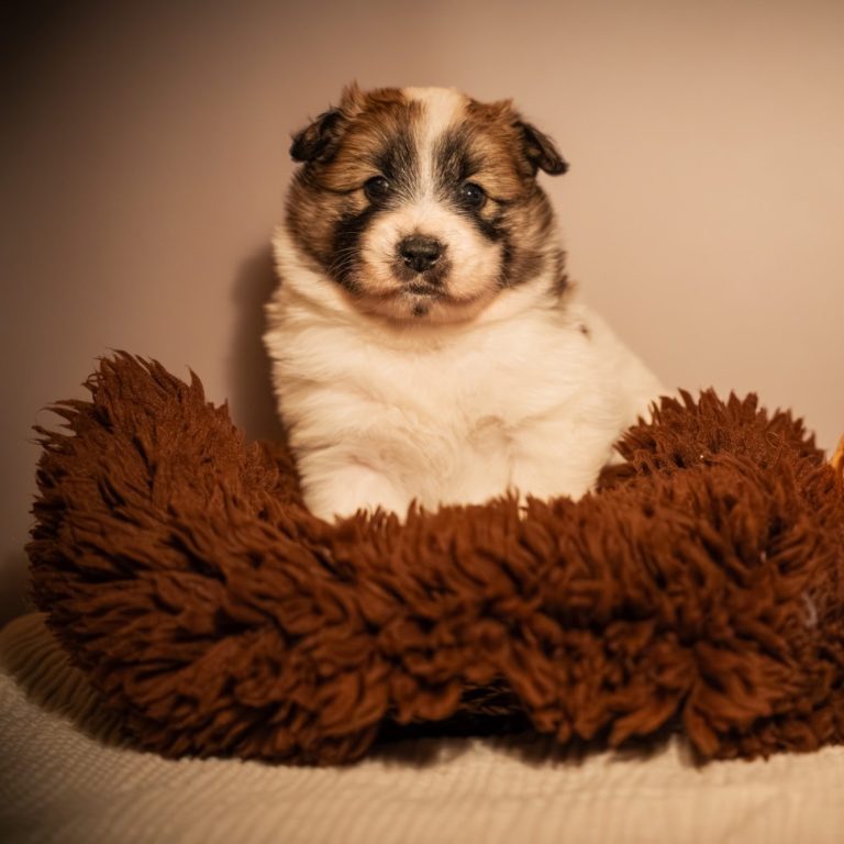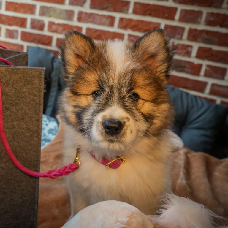 Aus dem kleinen tapsigen Wirbel ist ein fröhlicher Welpenwirbel geworden. Sie wiegt jetzt 5.560 g.